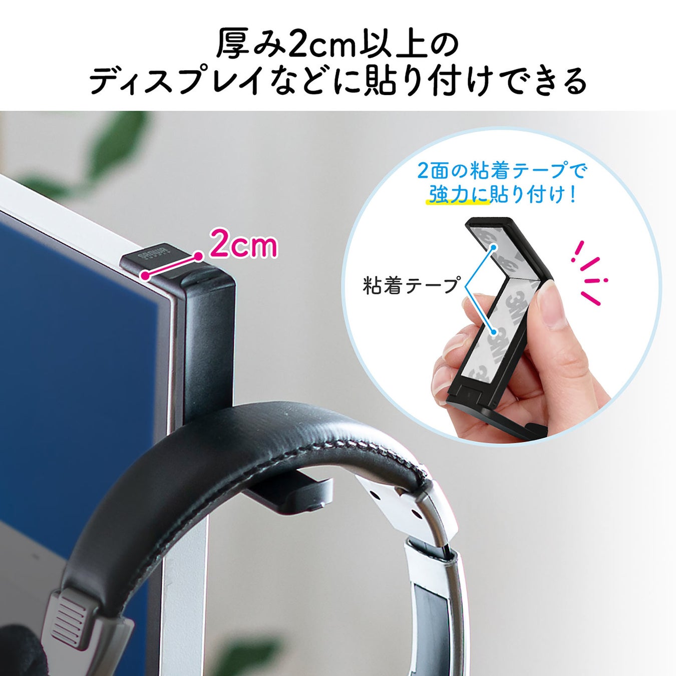 耐荷重は800gで、余剰ケーブルのメンテナンスやヘッドホンをかける際に便利です。
