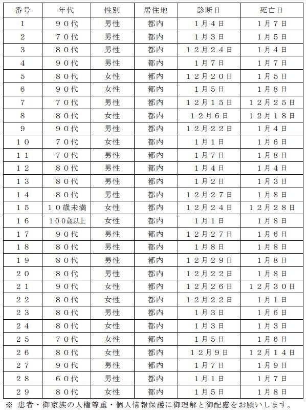 都内で新型コロナウイルスに感染した方が死亡されましたのでお知らせします。
