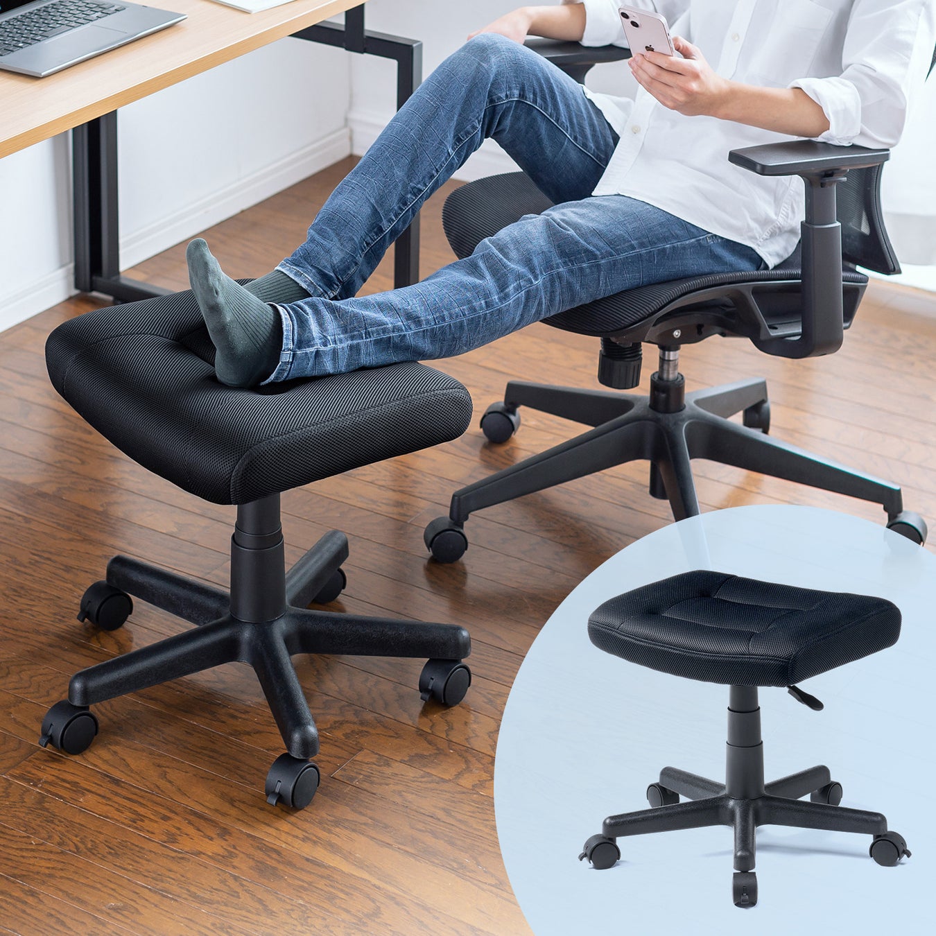 いつものチェアで足を伸ばしてリラックスできる、キャスター付きのオットマンを発売