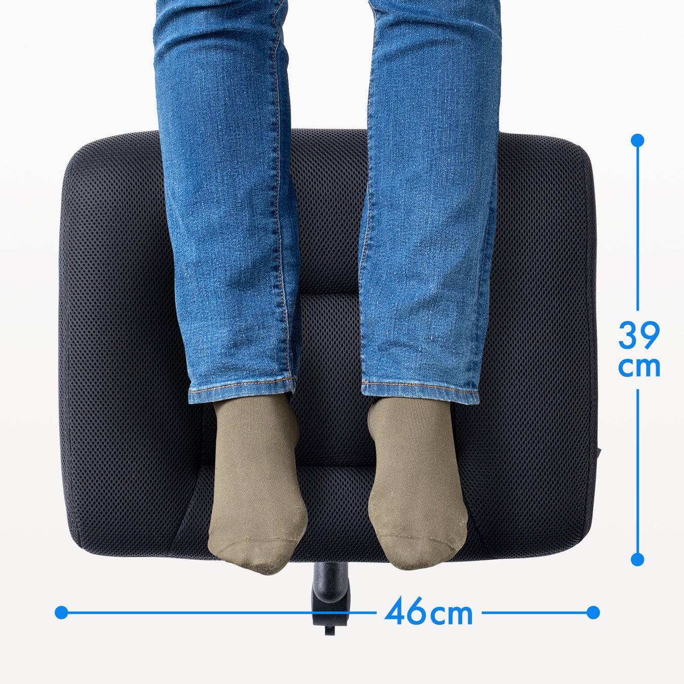足を置くクッションは幅46cm×奥行き39cmで、足を伸ばしてリラックスできる、ちょうど良いサイズです。