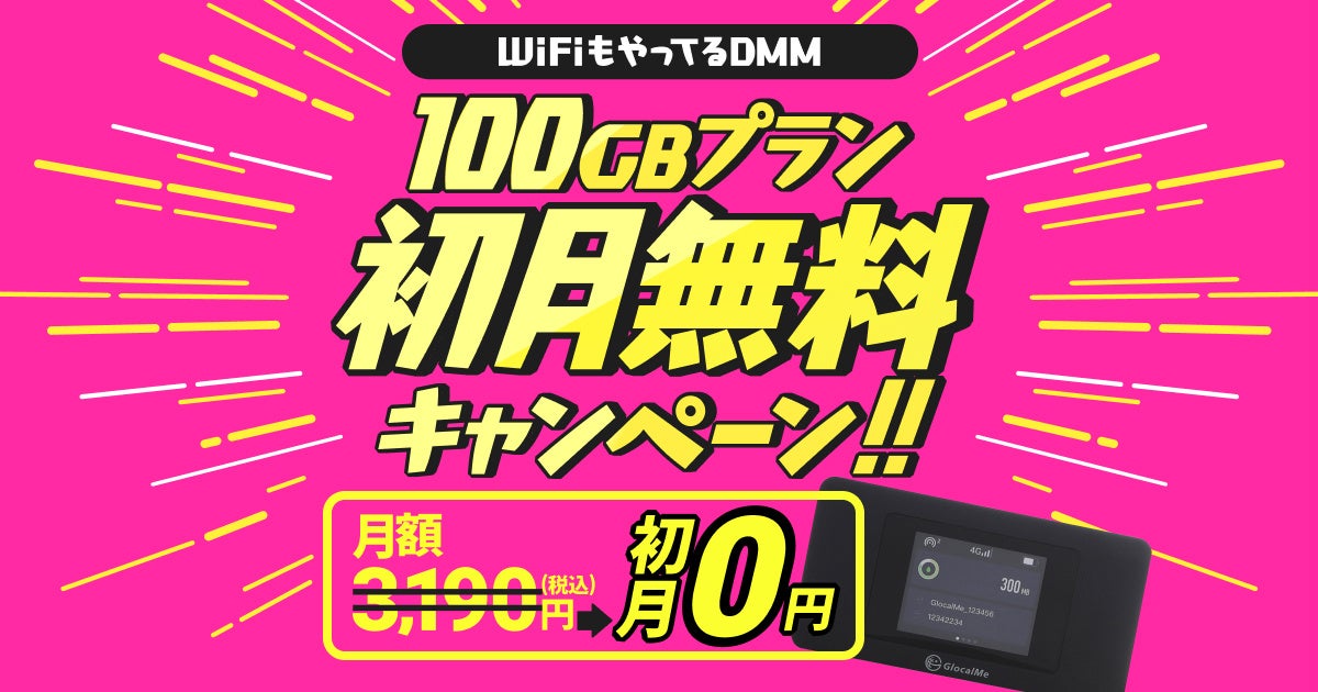 【DMMいろいろレンタル】1000台限定!クラウドWi-Fi 100GBプランの初月レンタル料金が0円
