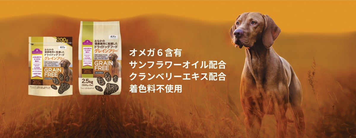 総合栄養食タイプの「トップバリュ 犬のお腹の健康維持に配慮したドッグドライフード グレインフリー※1)」新発売