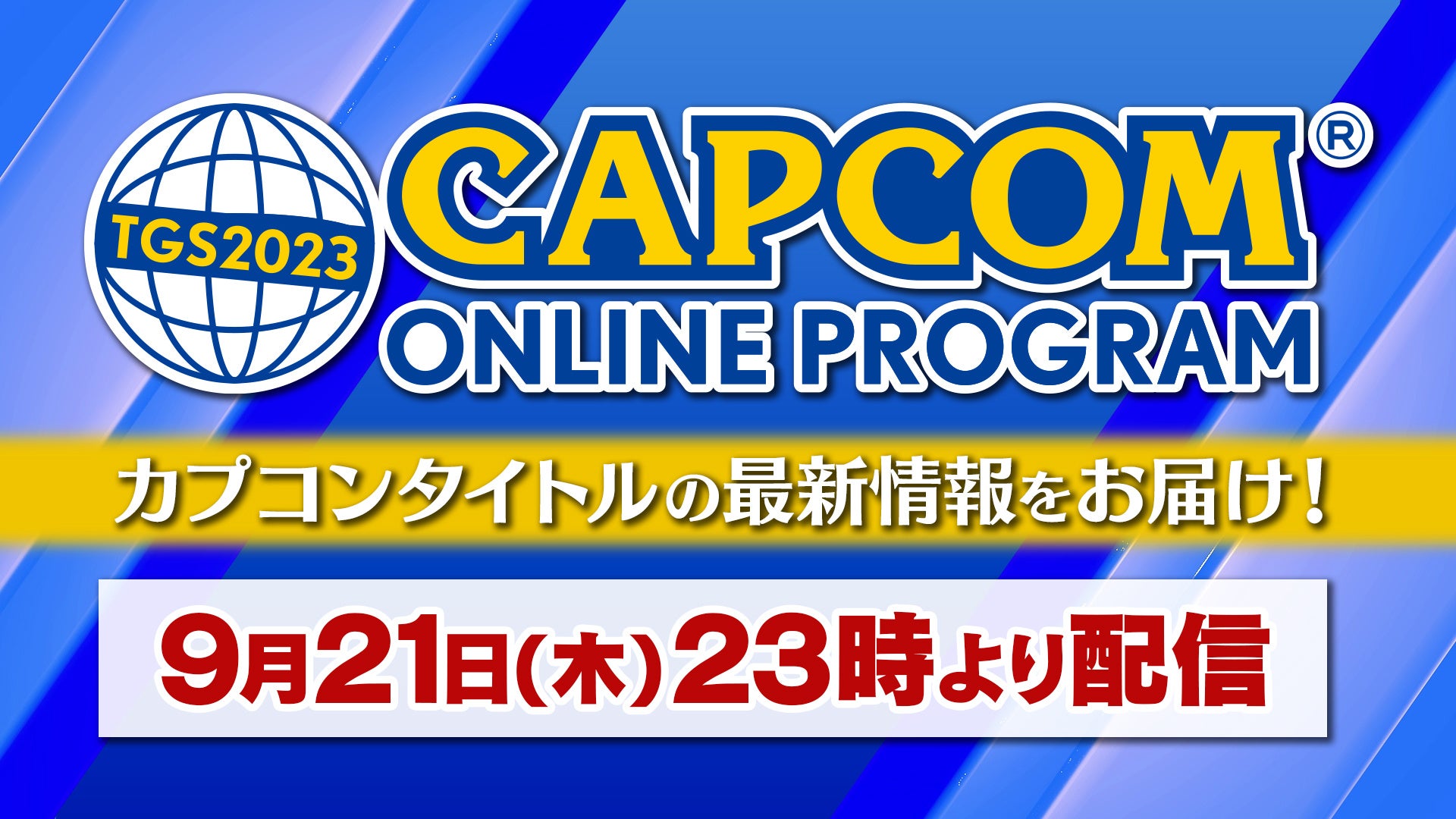 9月23日(土)~24日(日)にカプコンブースで実施されるステージプログラムを生放送で配信! カプコン公式YouTubeチャンネルに見逃し配信も公開予定だ。