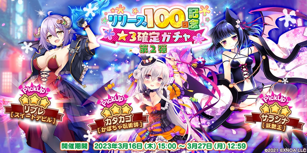 毎回★3デコが1体確定の「リリース100日記念★3確定ガチャ第2弾」と、ヨモギがピックアップされた「厳選アタッカーピックアップガチャ」が開催中!