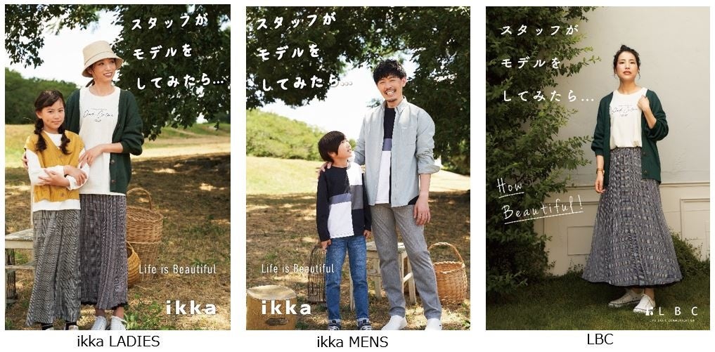 オーディションには、従業員から28名の応募があり、社内での厳正な投票、審査の結果、グランプリとなった3名のスタッフモデルを起用した大型タペストリーを9月1日(金)より店頭に設置し、自社ブランド「ikka」「LBC」にて、今秋の重点アイテムの販売促進を行っております。