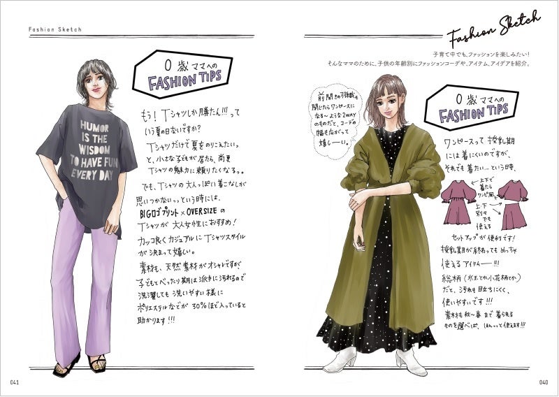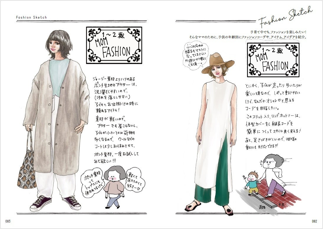 育児中もファッションを楽しみたいママに、実用性があり、且つオシャレなコーディネイトやアイデアをイラストとともにたくさん紹介します。