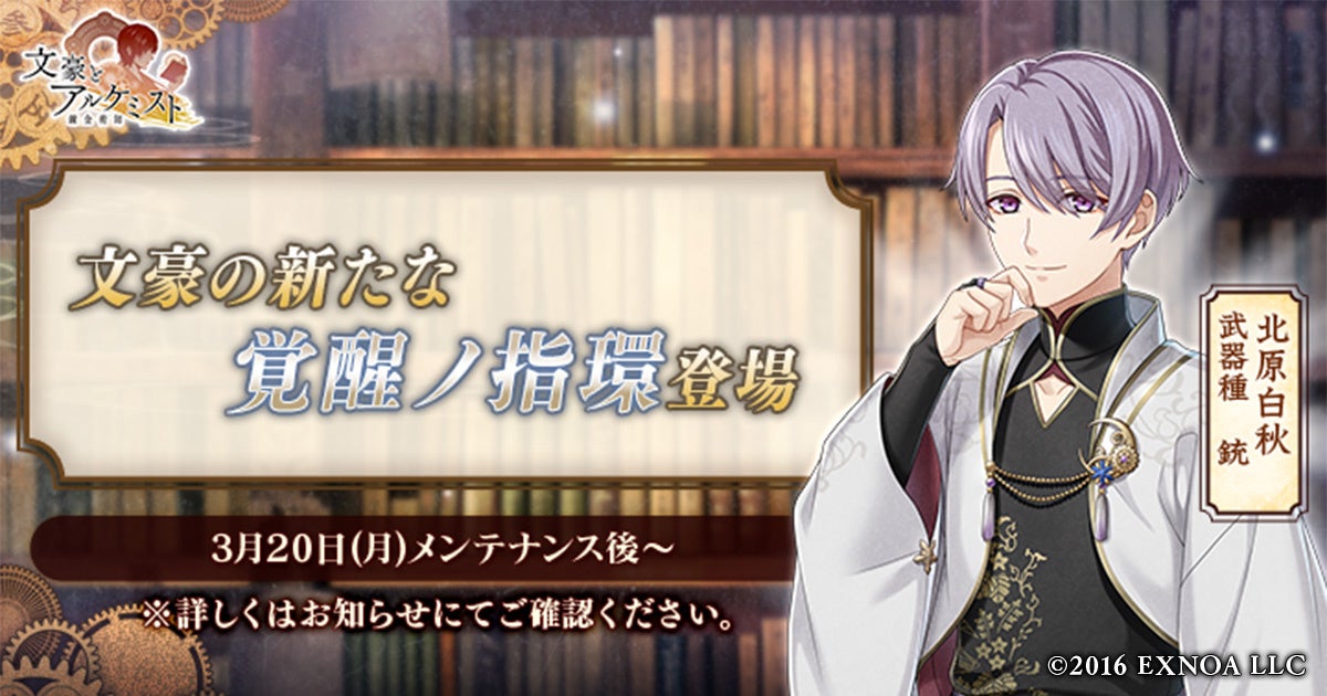 合同会社EXNOA(本社:東京都港区、CEO:村中 悠介、URL:https://games.dmm.com/)が運営するDMM GAMESは、3月20日(月)より、女性向け文豪転生シミュレーションゲーム「文豪とアルケミスト」において、北原白秋の新たな「覚醒ノ指環」が登場いたしました。