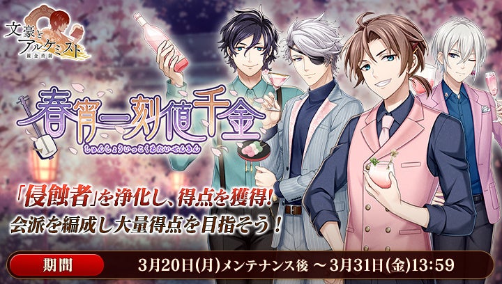 DMM GAMES『文豪とアルケミスト』北原白秋の新たな「覚醒ノ指環」が登場!イベント『調査任務「春宵一刻値千金」』開始のお知らせ