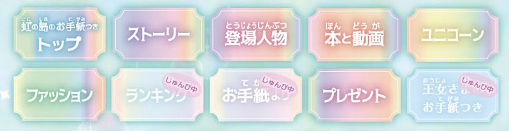 ▲「虹の島のお手紙つきシリーズ 公式サイト」トップのコーナー。きれいな虹色をイメージカラーにしている。