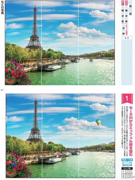 ▲フランスのパリの絶景写真を楽しみながら、旅する気分で脳トレに取り組むことができる。