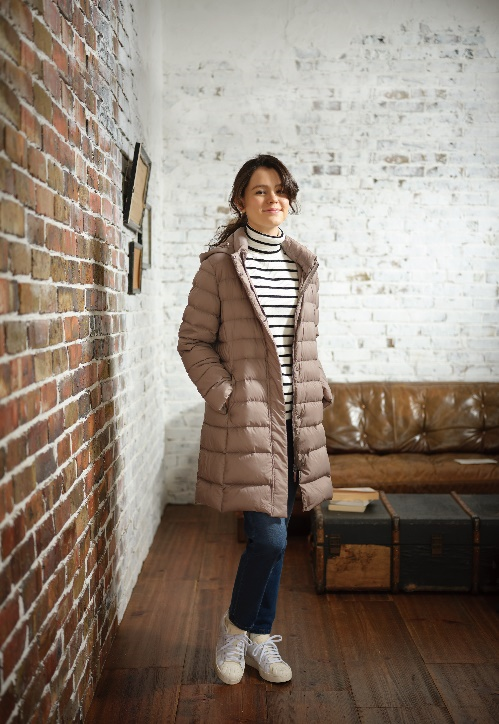 昨年よりダウンの量を増やして、よりアウターらしい着こなしができます。