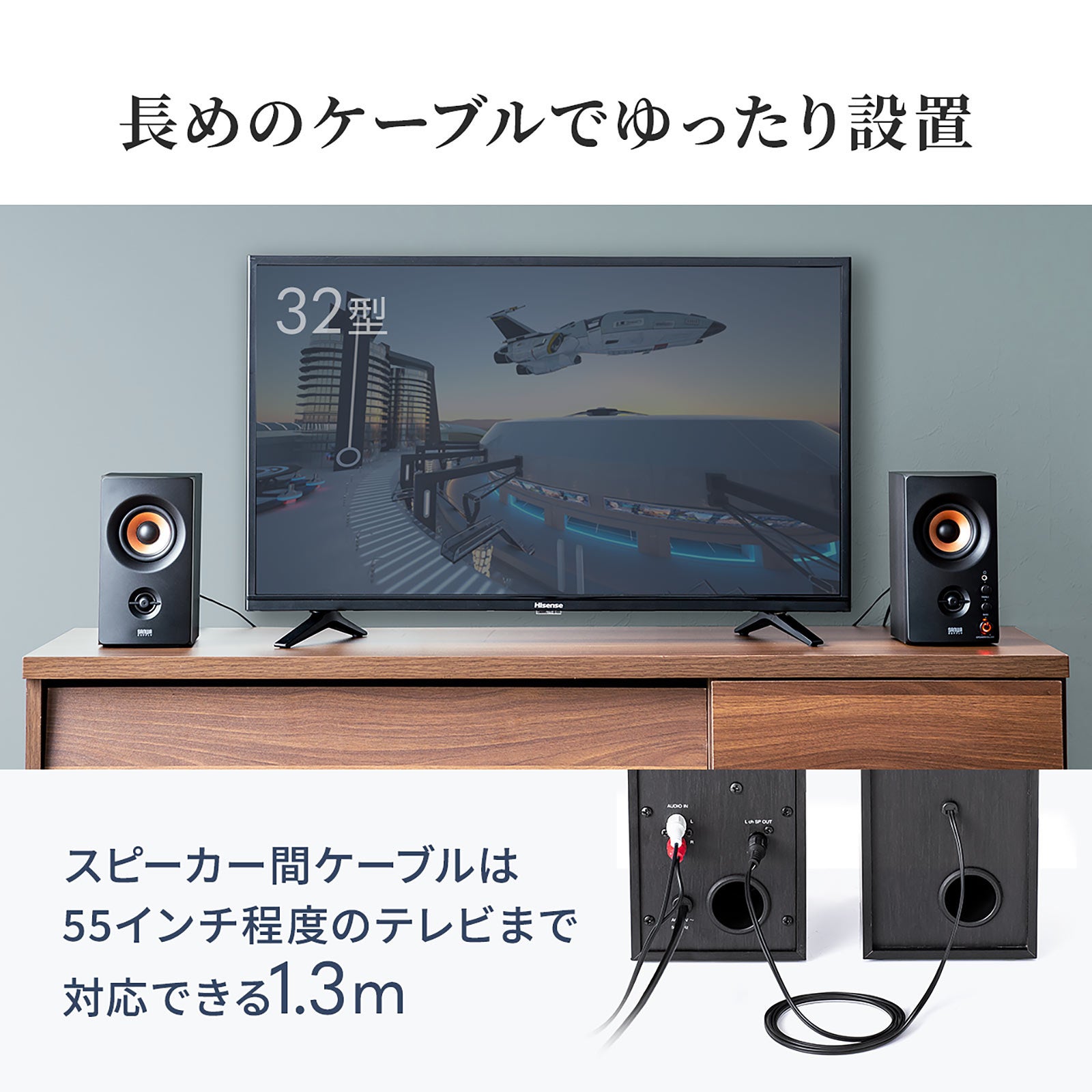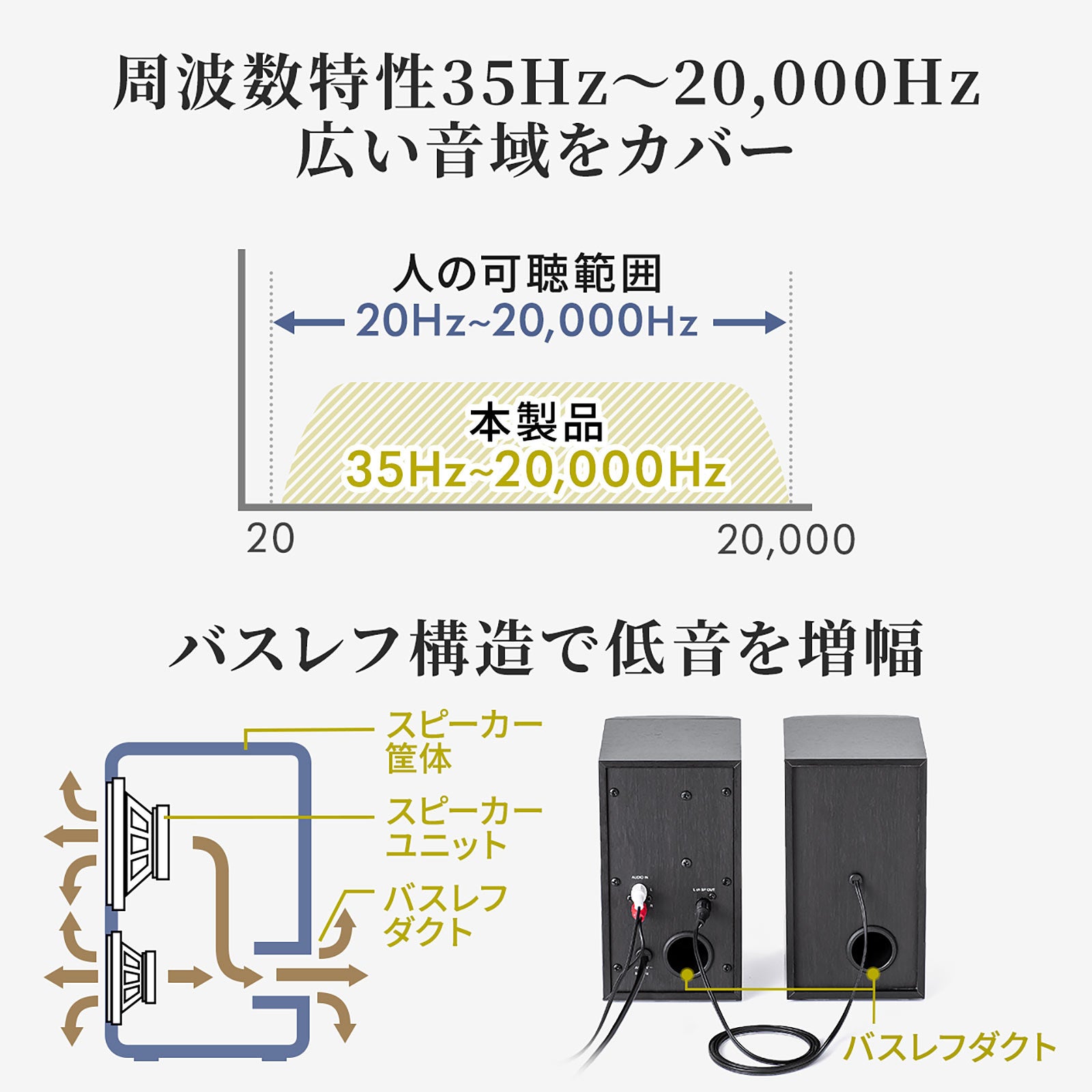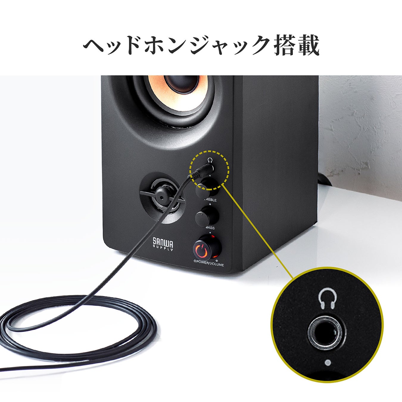本製品は、パソコンやテレビに接続して臨場感あふれるサウンドを楽しめる、2WAYユニット構成のアンプ内蔵スピーカーです。ヘッドホン出力端子(3.5mmステレオミニジャック)に接続して使う有線タイプです。