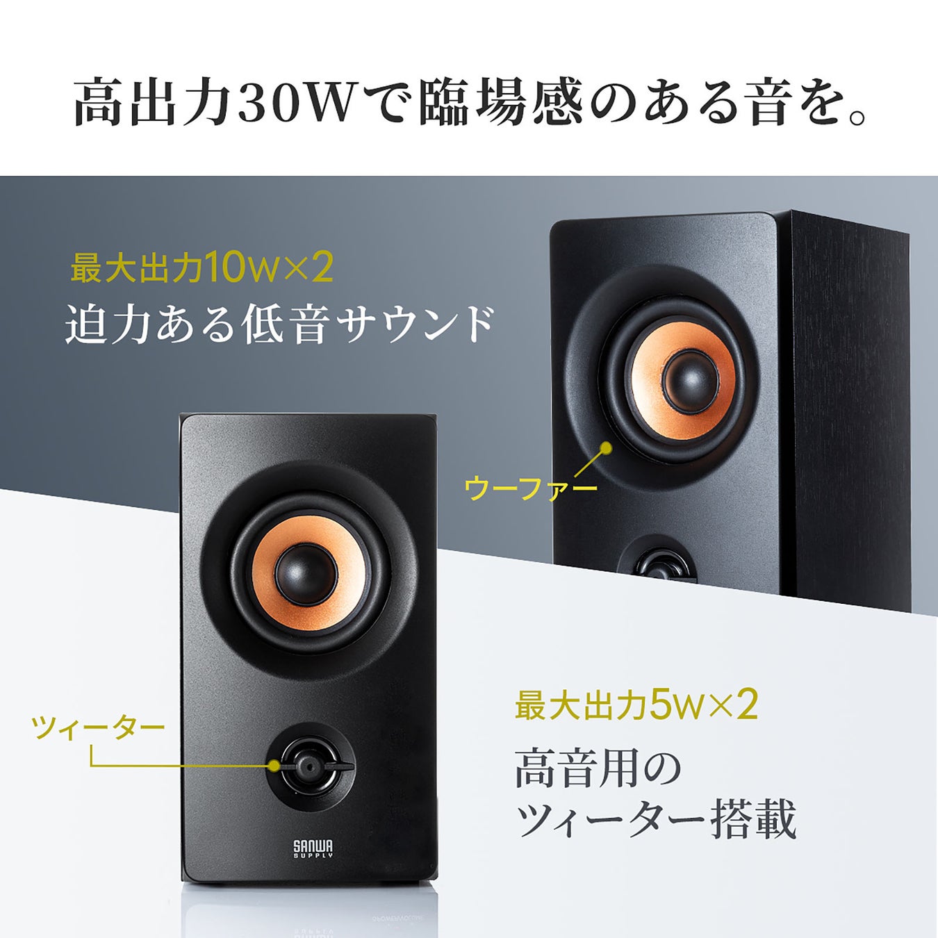サンワサプライ株式会社(本社:岡山市北区田町1-10-1、 代表取締役社長 山田 和範)が運営している直販サイト『サンワダイレクト』では、パソコンやテレビにつないで臨場感あるサウンドを楽しめる、2WAYユニット構成のアンプ内蔵スピーカー「400-SP107」を発売しました。