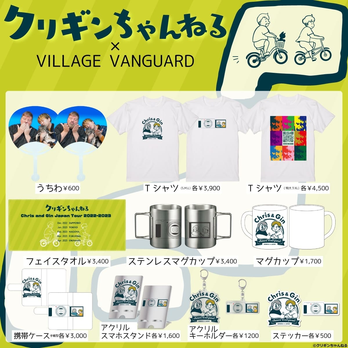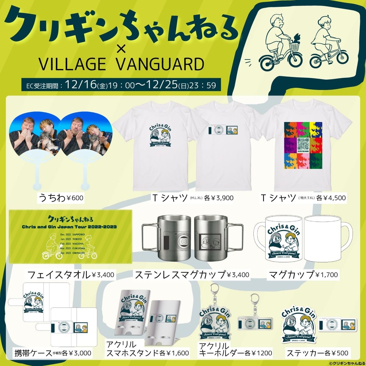 2022年12月16日(金)より、大きな体にキュートなハート♥️アメリカ人の『クリス』さんと、関西弁のナイスガイ『ギン』さんによる【クリギンちゃんねる】とヴィレッジヴァンガードの限定コラボグッズがオンラインストアにて発売決定!!