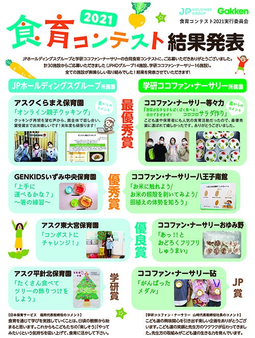 学研ココファン・ナーサリーとジェイキッチンが共同開催した、保育園「食育コンテスト 2021」の結果発表