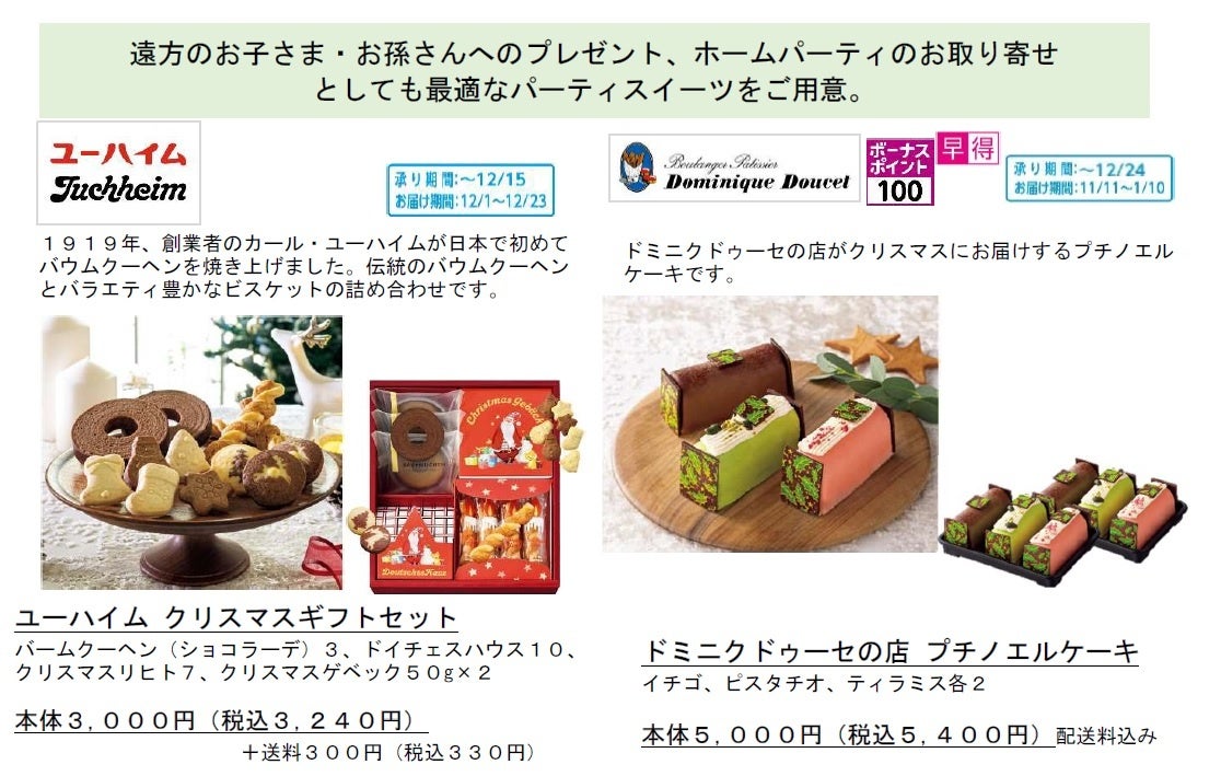 【クリスマス気分を盛り上げる“パーティスイーツ”の一例】