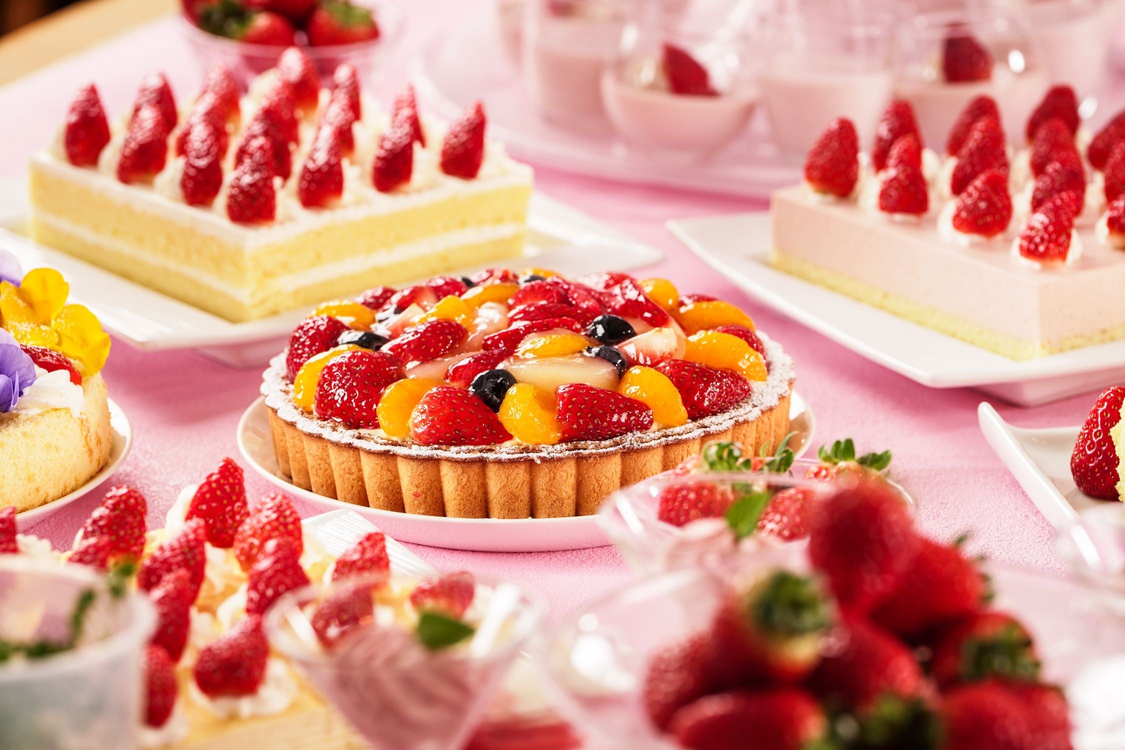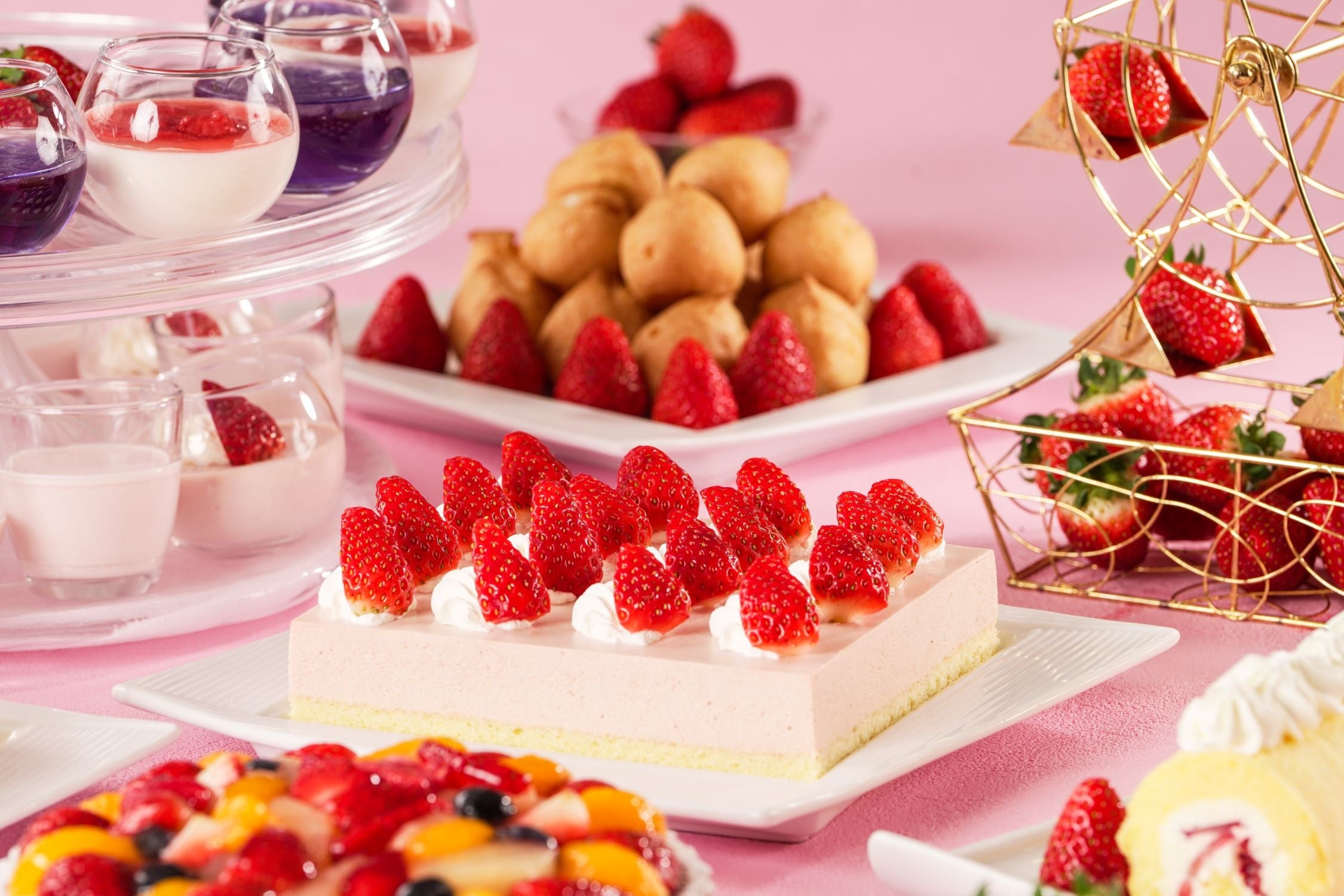 ブリュレフレンチトースト バニラアイス添え いちごソース、いちごショートケーキ、いちごと季節のフルーツタルト、いちごロールケーキ、いちごムース、いちごプリン、いちごシフォンケーキ、いちごレアチーズケーキ、いちごのミルクレープ、いちごブランマンジェ、いちごオレ、いちごのフール、グリークヨーグルト(ベリーソース/ブラックベリー・ブルーベリーソース)、フルーツカクテル 白玉添え、チーズケーキ、ガトーショコラ、シュークリーム、バタフライピーティーのジュレ、アソートドーナツ