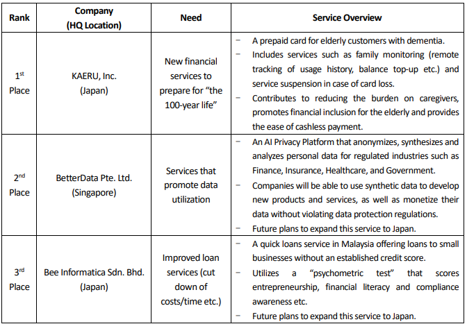 The Tokyo Metropolitan Government (TMG) is pleased to announce that the winning companies for the Tokyo financial Award have been selected.