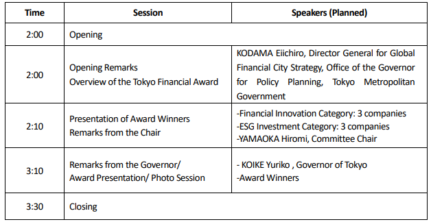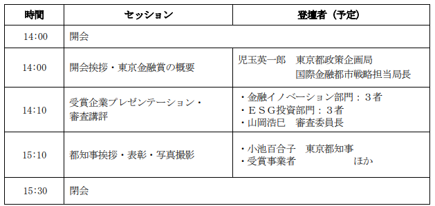 東京金融賞 受賞事業者の決定及び表彰式の開催について