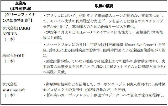 グリーンファイナンスの観点から特に優れた事業者を表彰する賞です。