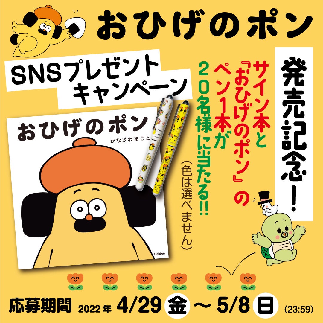 株式会社 学研ホールディングス(東京・品川/代表取締役社長:宮原博昭)のグループ会社、株式会社 学研プラス(東京・品川/代表取締役社長兼COO:南條達也)は、2022年4月29日~2022年5月8日に、抽選でサイン本と『おひげのポン』のオリジナルペンのセットが当たる「発売記念!絵本『おひげのポン』SNSプレゼントキャンペーン」を開催します。