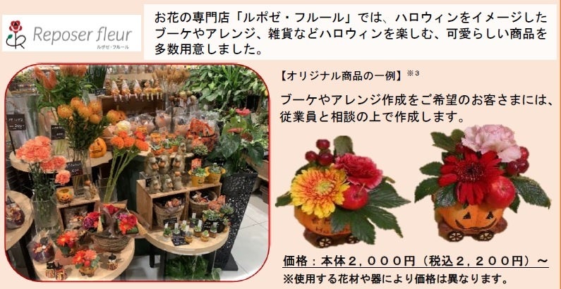 「お家を飾って楽しむ」「ハロウィンを食で楽しむ」需要にお応えし、お花の専門店「ルポゼ・フルール」やコーヒー豆と世界の食品専門店「caférrant(カフェランテ)」にて、ハロウィンシーズン限定の商品を多数用意します。