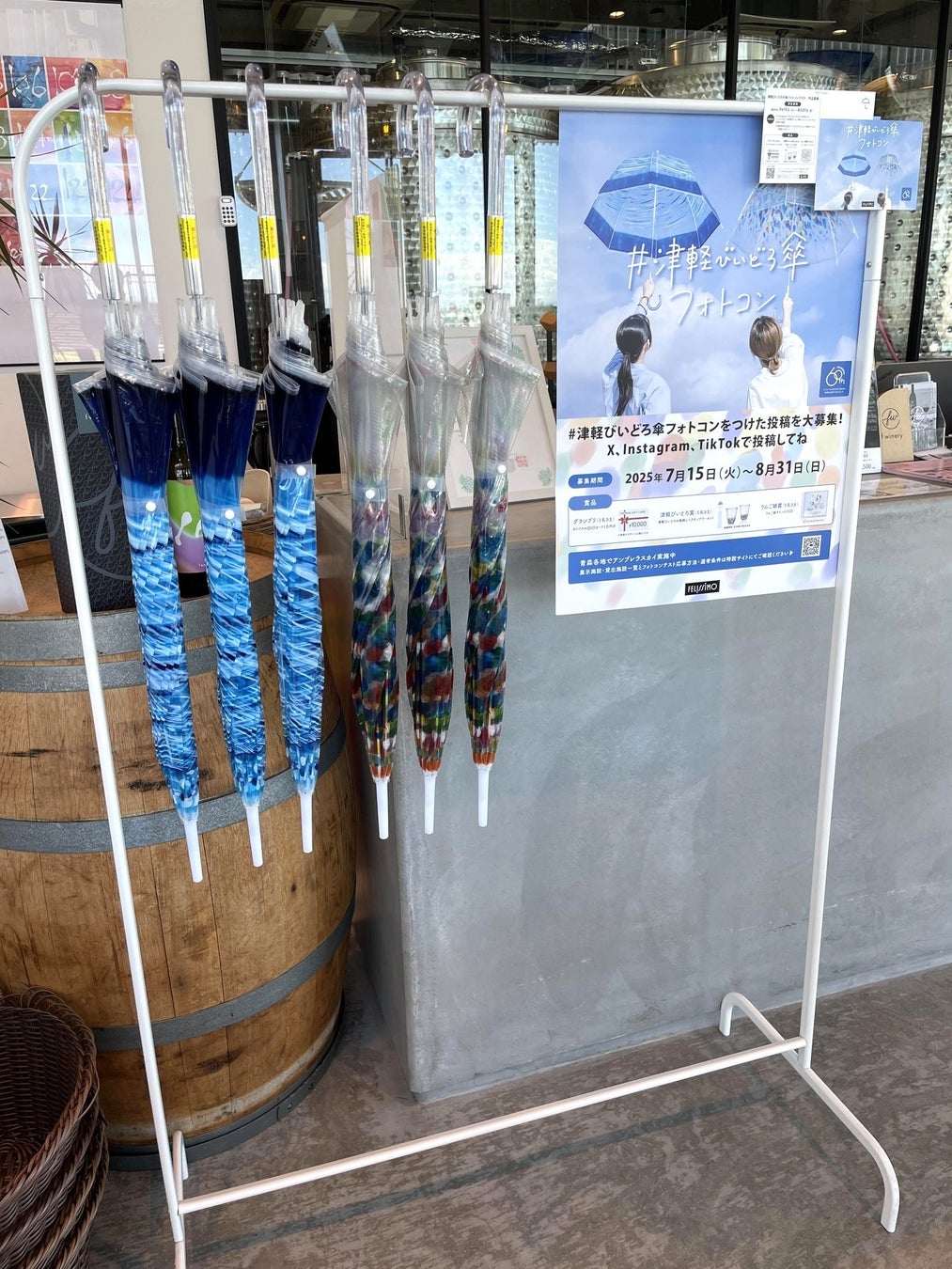 ◆「f winery[エフワイナリー]」では、フェリシモ創立60周年企画「#津軽びいどろ傘フォトコン」に参加できる撮影用の傘の無料貸し出しも行っています。使用後に返却するルールで、「津軽びいどろ傘」が無料で借りることができます。