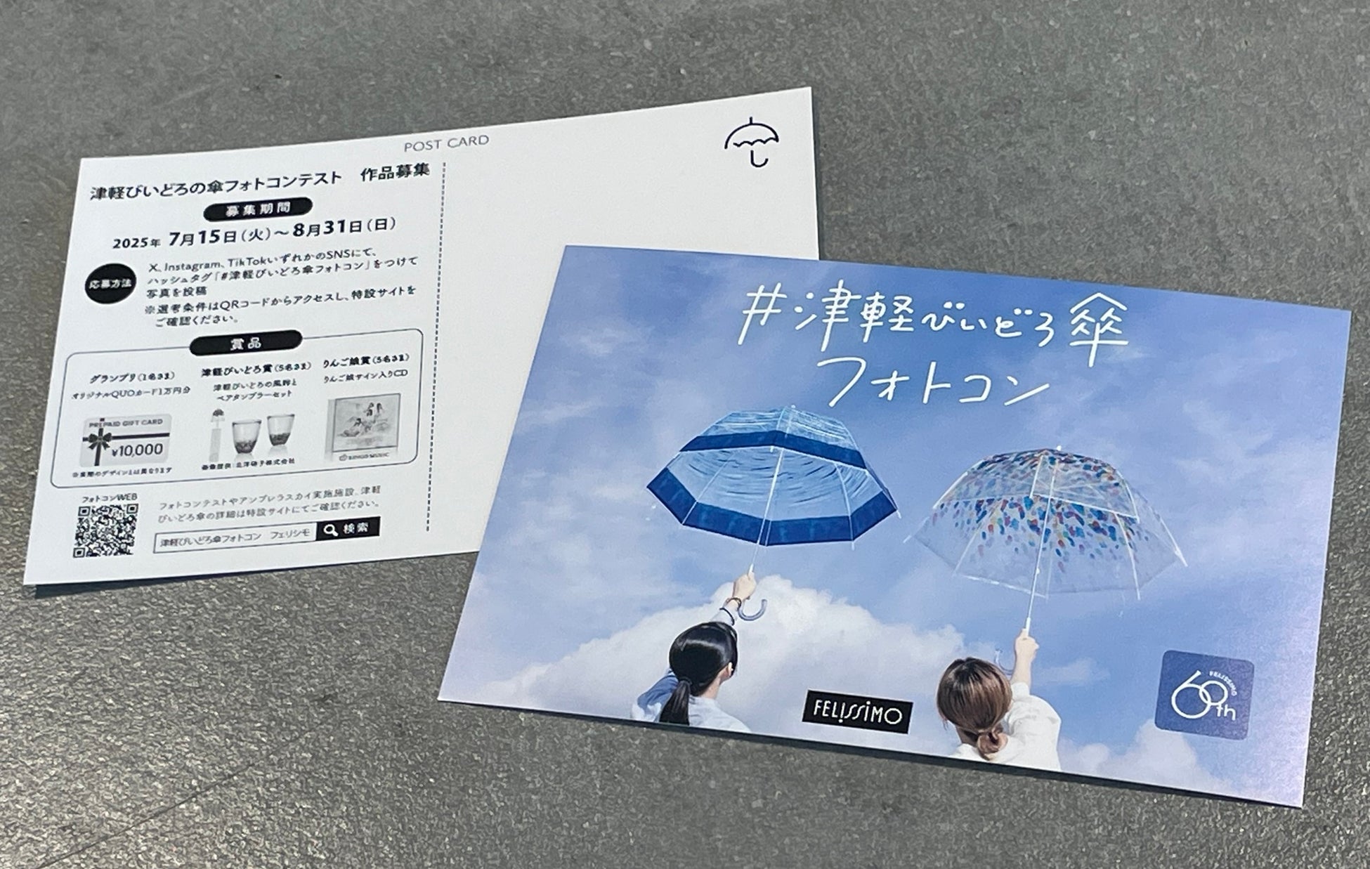 青森県津軽地方の伝統工芸品「津軽びいどろ」をモチーフにしたフェリシモの透明傘「津軽びいどろの風鈴傘」を使って撮影した写真コンテストです。X、Instagram、TikTokのいずれかでフェリシモ公式アカウントをフォローし、ハッシュタグ「#津軽びいどろ傘フォトコン」を付けて投稿するだけで参加できます。青森・神戸・静岡を含む全23ヵ所の協力施設で「津軽びいどろの風鈴傘」の展示を行い、無料貸し出しや販売も実施しています。フェリシモのウェブサイトや店舗で購入した傘でも参加できます。旅先や日常の風景の中で「びいどろの輝き」が映える瞬間を撮影した写真を募っています。投稿作品を選考し、受賞者には記念品が贈られます。