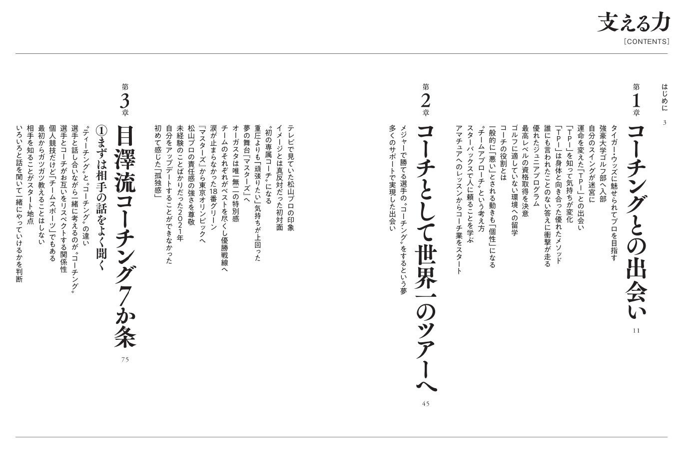 本書は、目澤コーチのゴルフとの出会い、そしてコーチングとの出会いから、プロコーチになってからの選手たちとのエピソード、目澤流コーチングの概論、これからのコーチに必要なスキル・考え方などを本人が紐解いていく、いわゆる“レッスン書”ではなく“読むゴルフ、コーチングについての本”です。