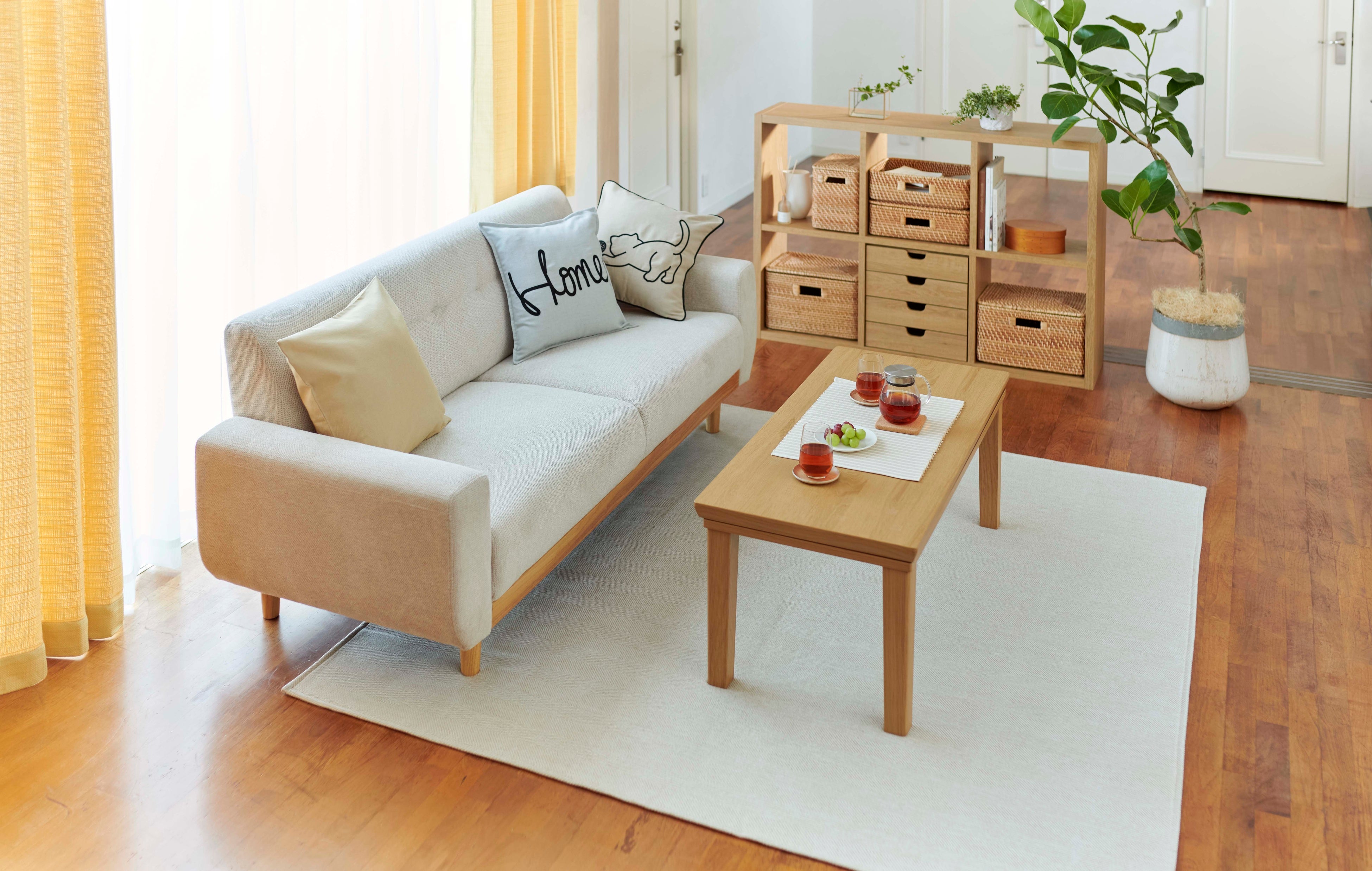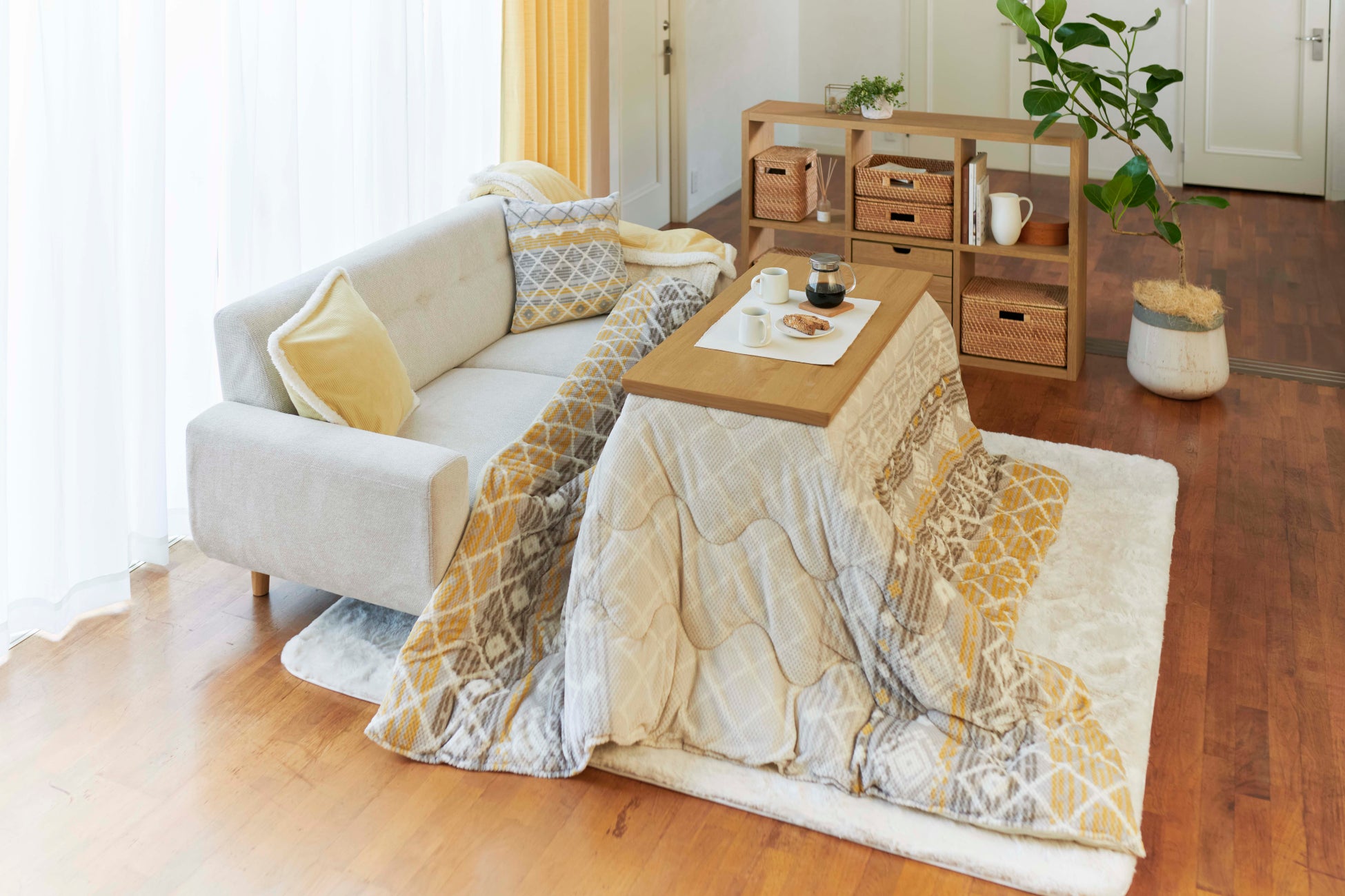 ソファで快適 新しいこたつライフ「コンセント・USBポート付き ソファ前高脚テーブルこたつ」