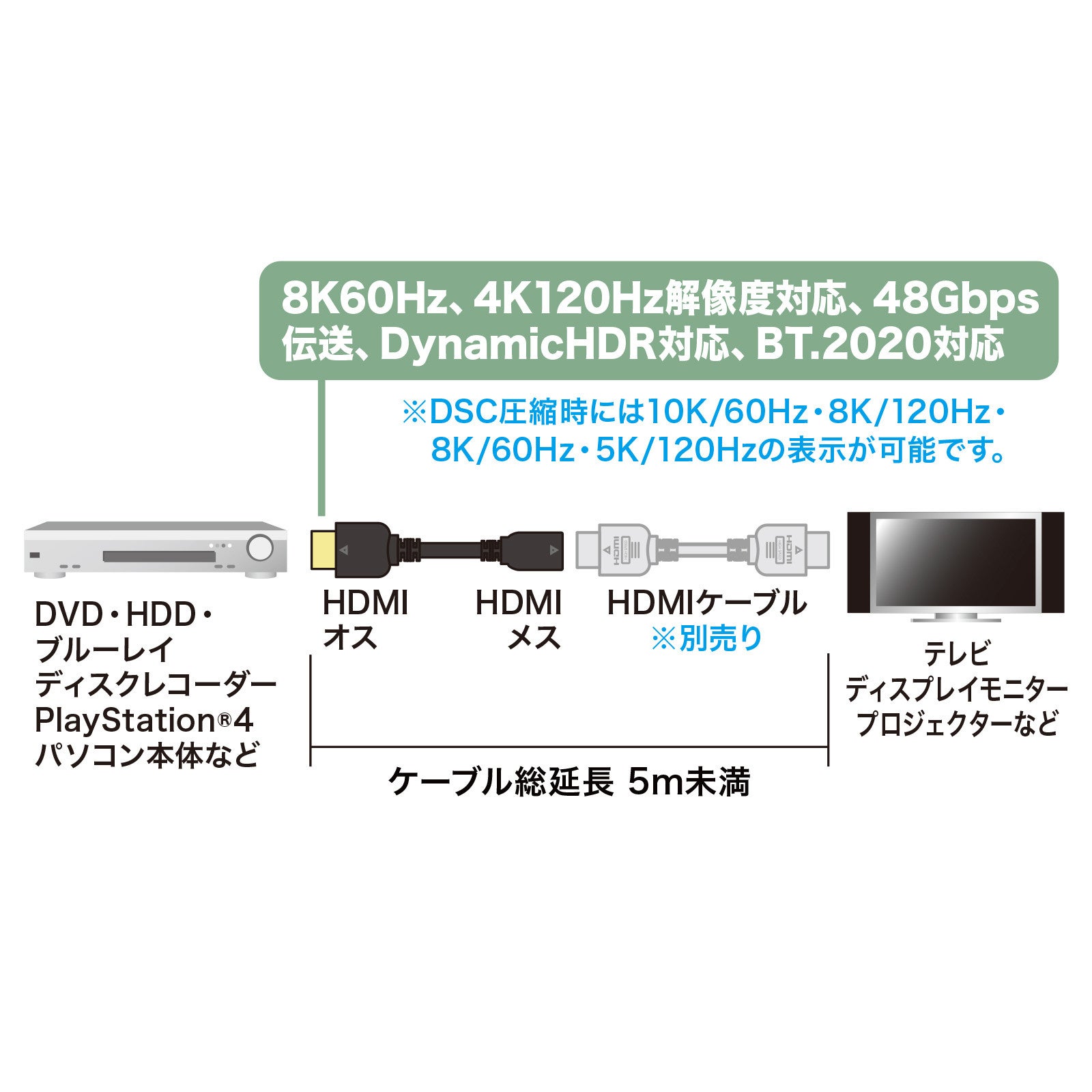 注)本製品は信号増幅のICなどを使用していないパッシブタイプのケーブルです。使用する機器、合わせて使用するHDMIケーブルの仕様によっては信号の減衰によって正常に使えない場合もあります。