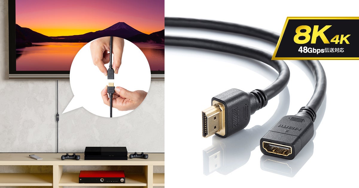HDMIケーブルを手元で抜き差ししたい時や、少し延長したい時に便利なHDMI延長ケーブルを発売