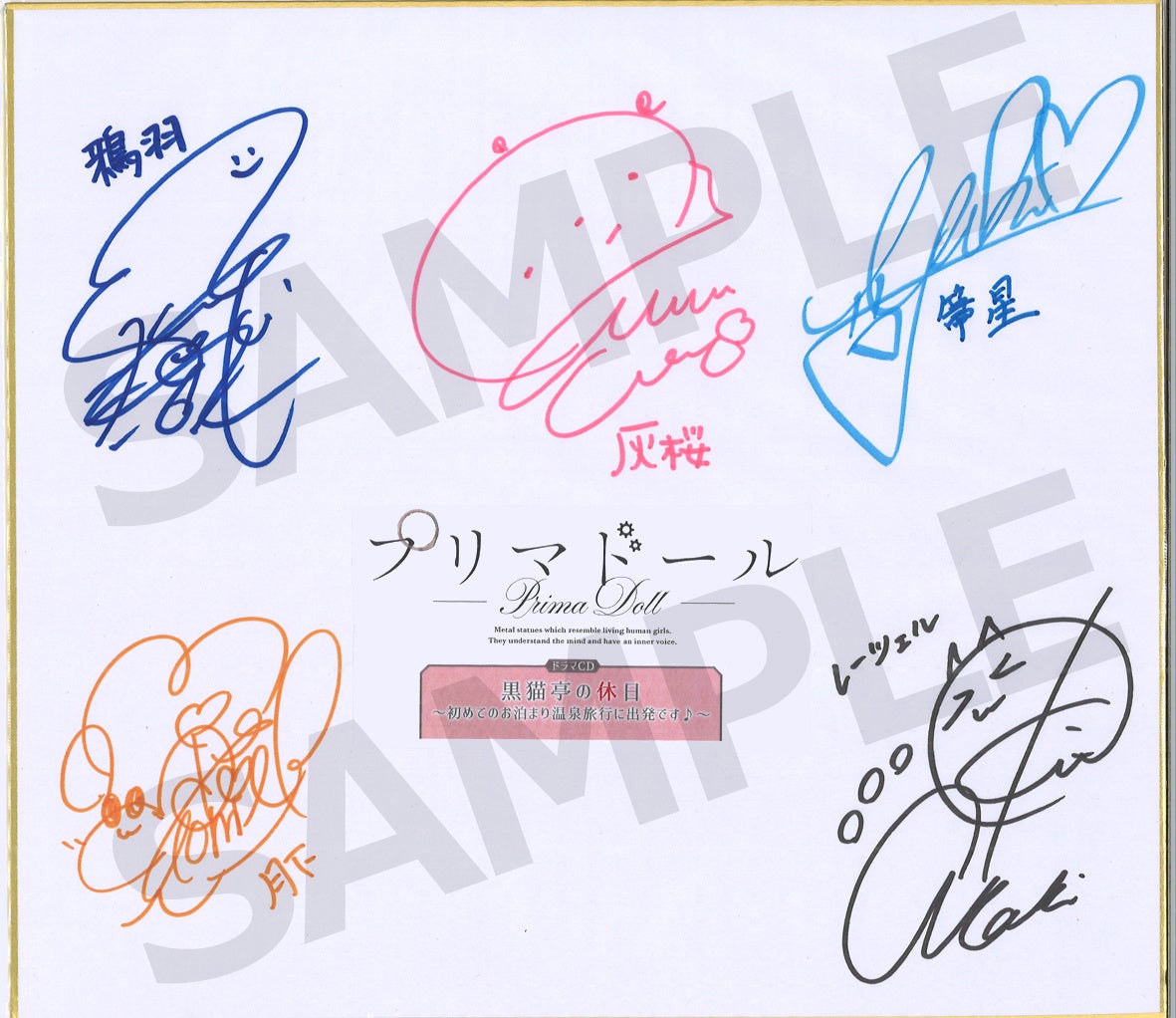 【POP UP SHOP開催記念】TVアニメ「プリマドール」より初のドラマCD「黒猫亭の休日 ~初めてのお泊まり温泉旅行に出発です♪~」メインキャスト寄せ書き色紙プレゼントキャンペーン実施決定!