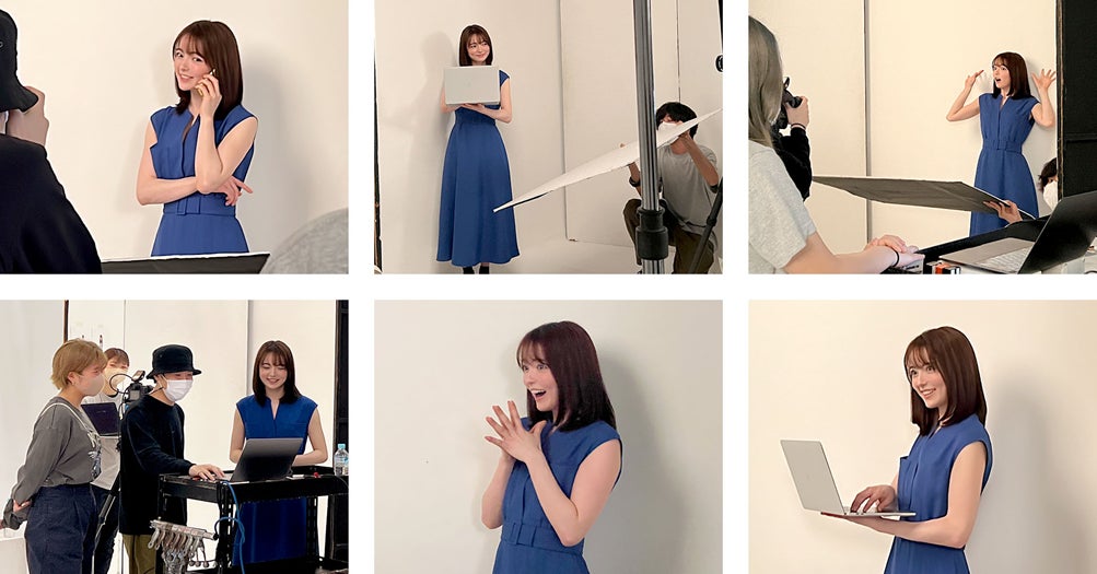 「GMOとくとくBB光」のメインキャラクターとして、坂巻有紗さんに本サービスのWEBページビジュアル撮影にご参加いただきました。撮影には本サービスイメージカラーであるブルーの衣装で登場。様々な表情を見せて撮影に挑んでくださっていました。