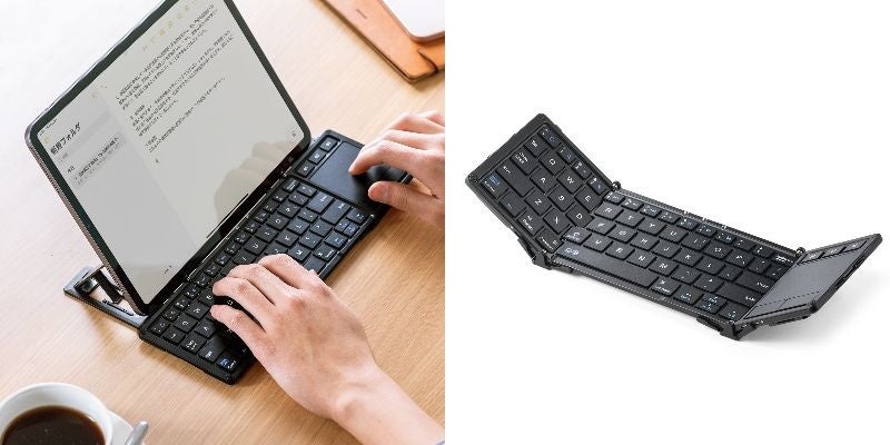 iPadをノートPCのように使える!スタンド+タッチパッド機能付き!折りたたみ式Bluetoothキーボードを2月22日に発売
