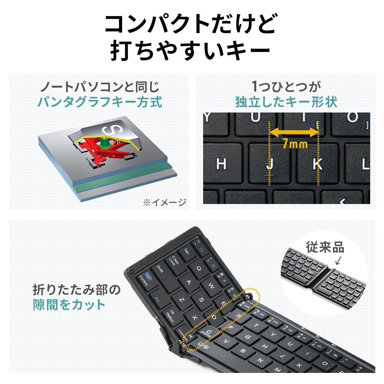 サンワサプライ株式会社(本社:岡山市北区田町1-10-1、 代表取締役社長 山田 和範)が運営している直販サイト『サンワダイレクト』では、最大3台接続可能で、パンタグラフ式アイソレーションタイプのキーを採用した、スタンド機能が付いたiPad・iPhoneでタッチパッドが使用できるBluetoothワイヤレスの折りたたみ式キーボード「400-SKB074」を発売しました。