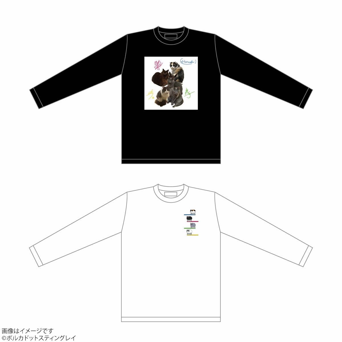 メンバーの愛猫「ビビ」「パンダ」「ごんすけ」「よもぎ&ぼたん」がデザインされたロングTシャツ。イラストねこver.は、雫(Vo.Gt.)による描き下ろしイラストを使用しており、ファン心をくすぐる一枚です。