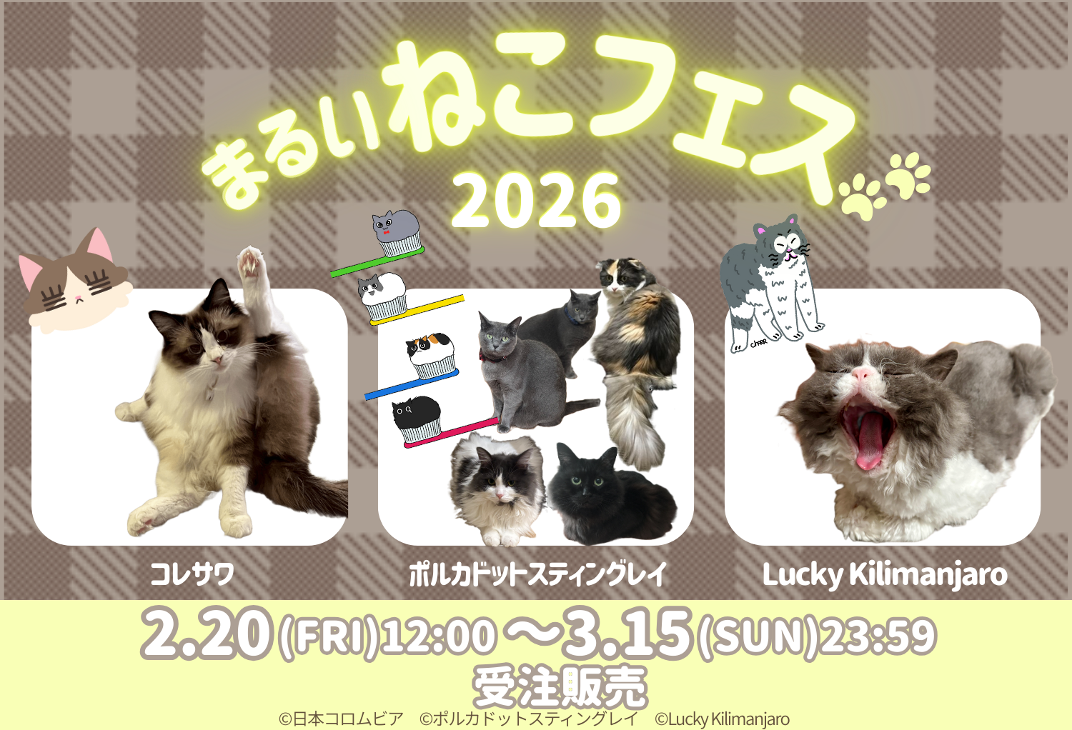 株式会社丸井(本社:東京都中野区、代表取締役社長:青野 真博)は、2月22日(日)の「猫の日」に合わせて、マルイのネット通販「マルイウェブチャネル」にて「まるいねこフェス2026」を開催いたします。ここでしか買えないオリジナルグッズの販売を行うほか、対象商品の売上金額の一部を、保護猫活動を行う団体へ寄付いたします。お買物を楽しむことが、保護猫たちを応援することにつながります。