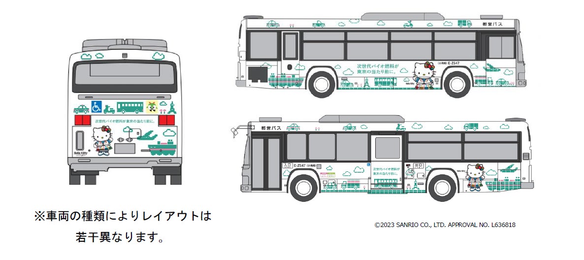 本協定に基づき、東京都交通局小滝橋自動車営業所(所在地:中野区東中野)所有の都営バス58両をバイオ燃料により運行します。また、SDGs応援活動を続けているハローキティのデザインを用いたバスラッピングも実施いたしますので、以下のとおりお知らせします。