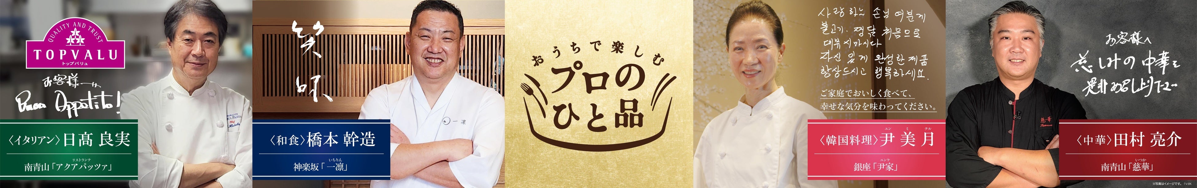 イオンは2021年10月、「自宅では味わえない、より本格的な味を手軽に楽しみたい」というニーズにお応えし、肉じゃがやビーフシチュー、餃子など、和洋中それぞれの一流料理人が監修した「トップバリュ プロのひと品」シリーズの発売を開始しました。「自宅でもちょっとした贅沢感が味わえておいしい」などご好評いただいており、発売開始から2年となる今年7月には韓国料理の尹美月(ユンミヲル)シェフ監修の新たな商品も加え、シリーズのラインナップをさらに拡大しています。