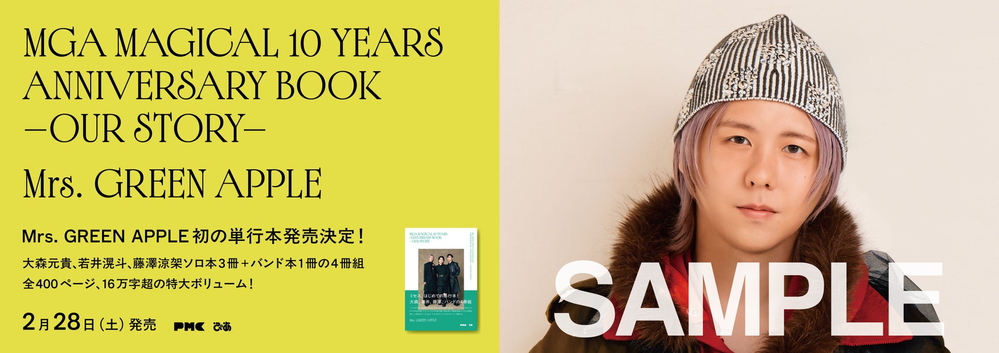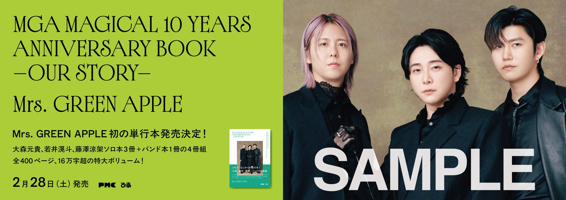2/28(土)Mrs. GREEN APPLE初の単行本発売!大森、若井、藤澤ソロ本3冊+バンド本『MGA MAGICAL 10 YEARS ANNIVERSARY BOOK -OUR STORY-』