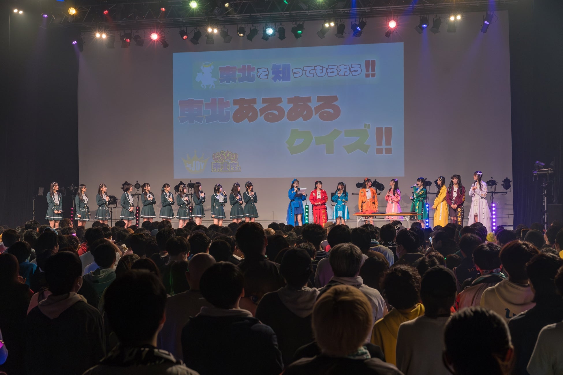 さらにイベント後半では、いぎなり東北産と≒JOYがサッカーの試合終了後にユニフォームを交換するようにお互いのグッズ交換により親睦を深め、いぎなり東北産が用意した「東北あるあるクイズ!!」に≒JOYメンバーが答えるなど企画色の強いトークパートも開催。また、クライマックスでは、各グループが相互の曲をカバーし、披露しあう楽曲交換も実施され、いぎなり東北産は「超孤独ライオン」を、≒JOYは「わざとあざとエキスパート」をそれぞれパフォーマンスし、対バンイベントならではのスペシャルな企画で会場は大盛り上がりを見せた。