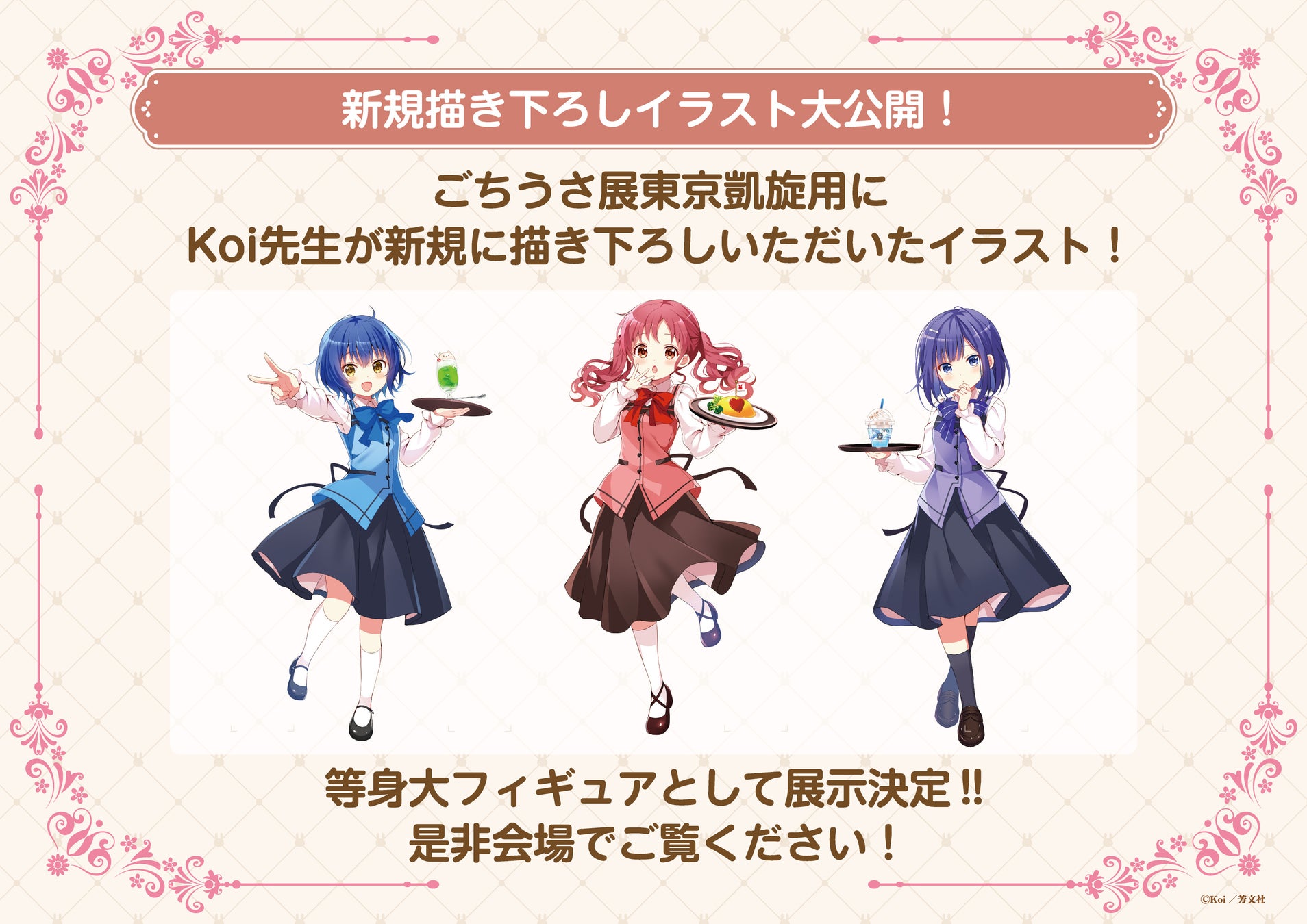 ラビットハウスの制服に身を包んだマヤ・メグ・フユの Koi先生新規描き下ろしのイラストを大公開!