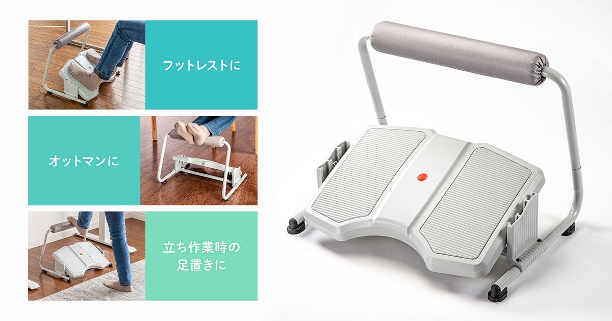 「フットレスト」「オットマン」「足置き」の3パターンの足の休め方ができるフットレストを発売