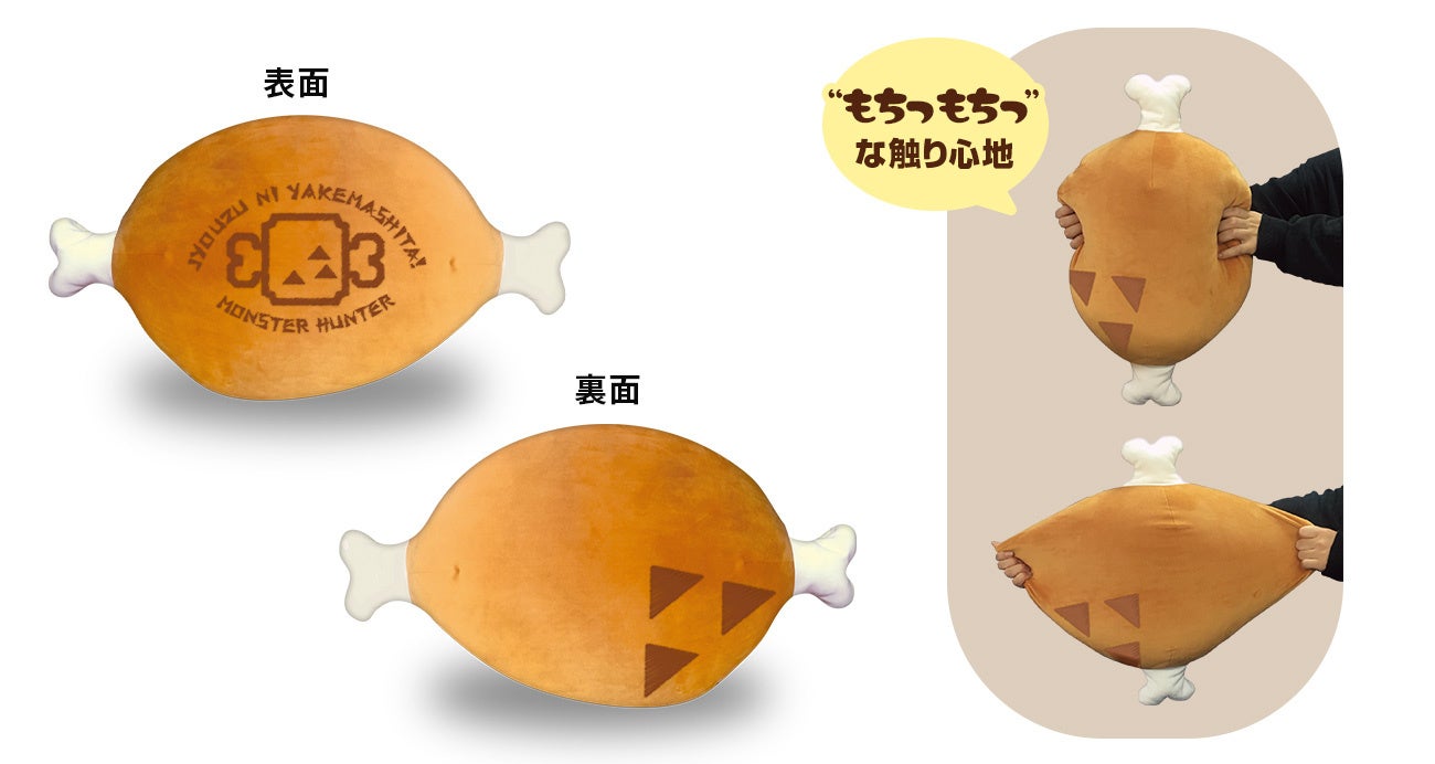 東京ゲームショウ2023物販会場でも大人気で完売した、「モンスターハンター」シリーズでおなじみのこんがり肉1/1サイズのクッション(復刻)が一般発売開始! “もちっ”とした触り心地抜群の商品です!