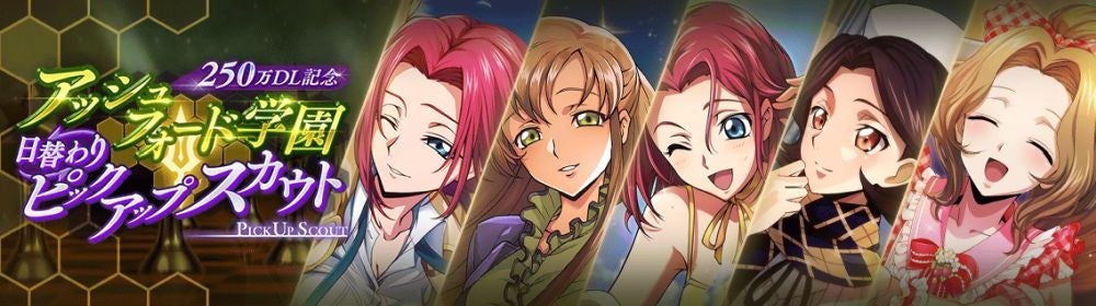このスカウトでは、「黒の騎士団勢力」「ブリタニア勢力」「アッシュフォード学園」3種類のスカウトが開催され、それぞれ1~3人の★4パイロットがピックアップされます。