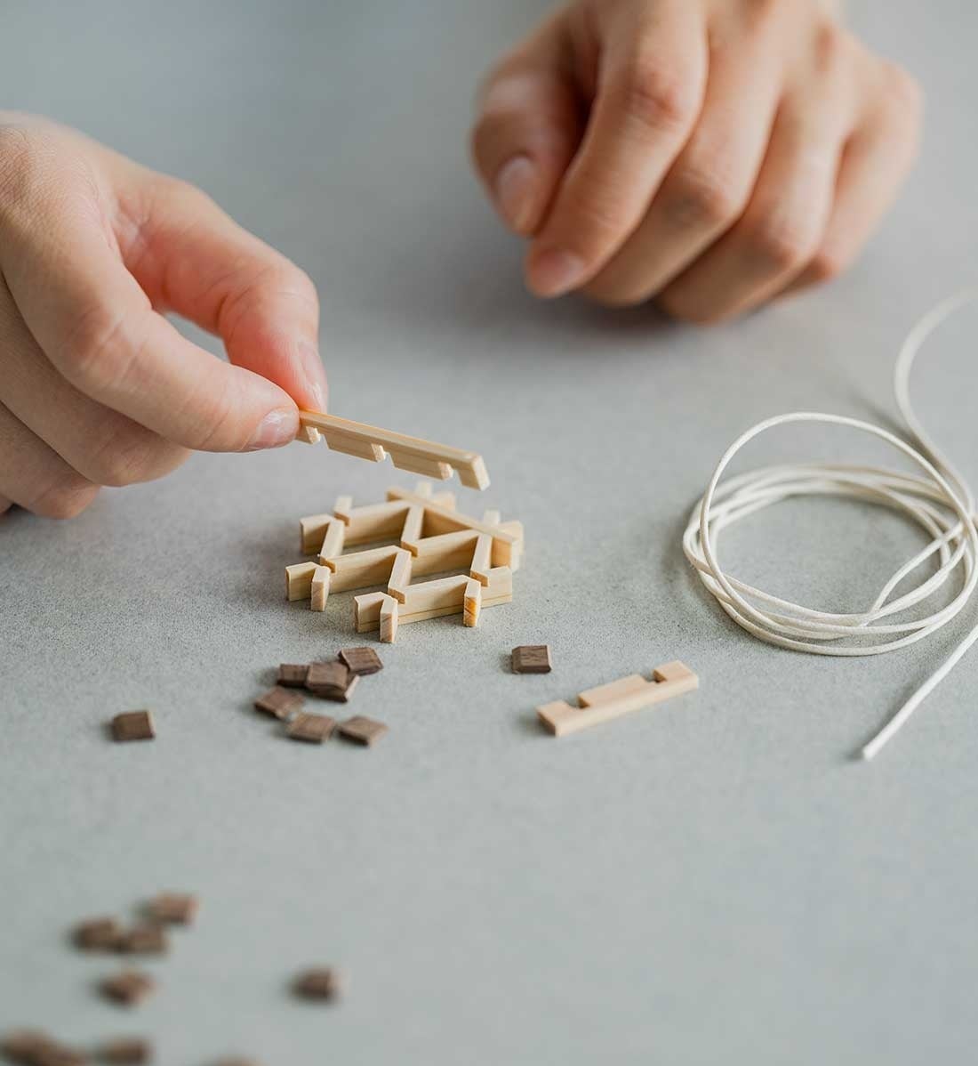 ◆小さなパーツに凝縮された職人の技に驚く、組子細工の縁起のよいお守り根付けキット