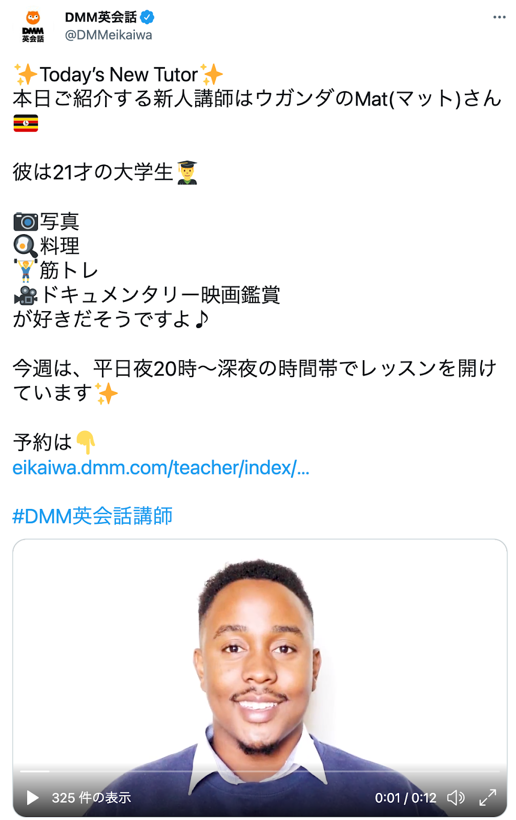 DMM英会話公式Twitterでは、在籍する多国籍で多彩な講師の紹介や、講師の動画によるリスニングクイズ、また世界の最新ニュースが読めるニュース教材から注目記事の紹介など、DMM英会話にまつわる様々な情報を随時発信しています。