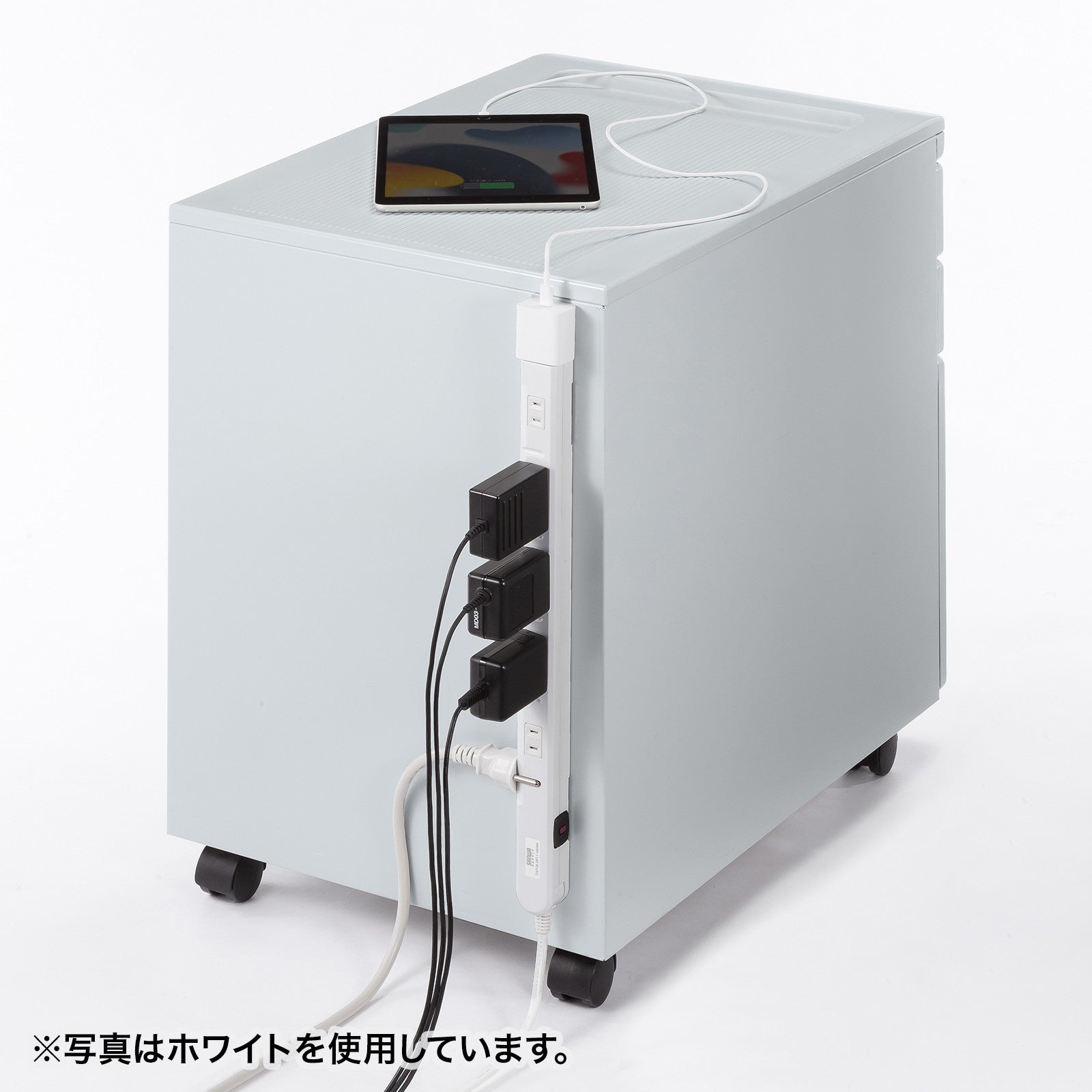 ACアダプタが無駄なく差せる固定用フック穴付きスリムタップのブラックを発売