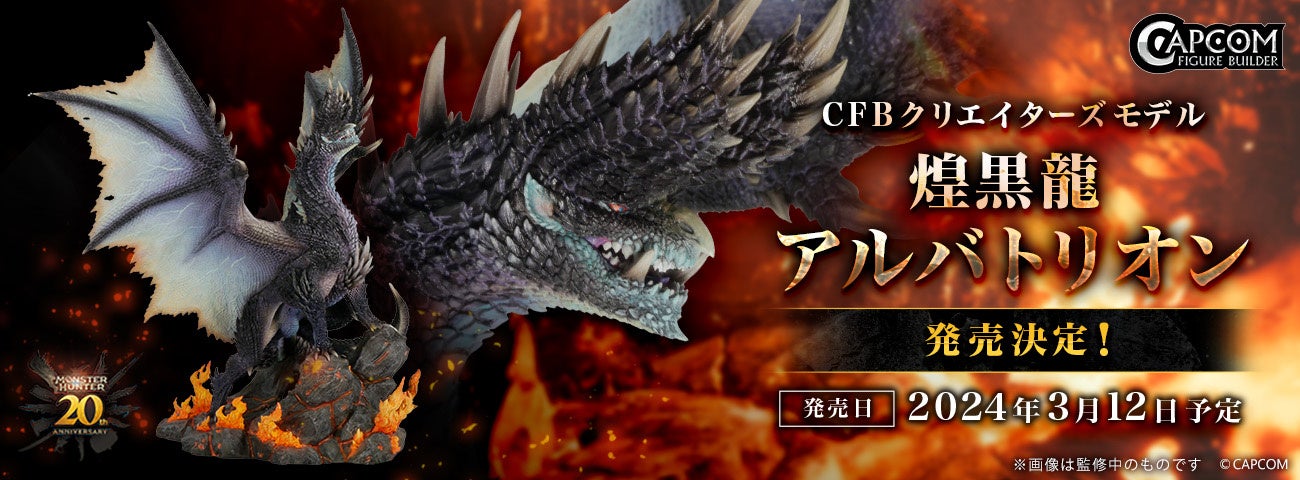 「モンスターハンター」シリーズ20周年記念商品としてフィギュア化される古⿓「煌⿊⿓ アルバトリオン」の動画が公開! 全⾝を鋭い逆鱗で覆われ、触れる者全てを無慈悲に引き裂くその姿を余すところなく再現。その圧倒的存在感を感じていただくために、「紹介動画」を是非チェックしよう!